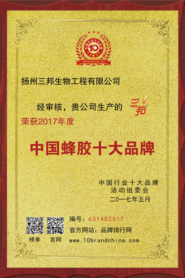 • 中國蜂產(chǎn)品消費(fèi)者滿意十佳產(chǎn)品